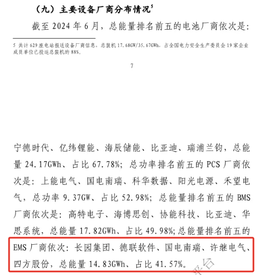 近日,中国电力企业联合会发布《2024年上半年电化学储能电站行业统计数据》,统计报告显示,截至2024年6月,总能量排名前五的EMS厂商依次: